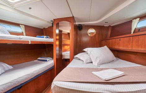 Has 5 cabins, 4 toilets and can accommodate up to 10 guests. Equipped with a Yanmar 100hp engine will make getting in and out of the harbour very easy.